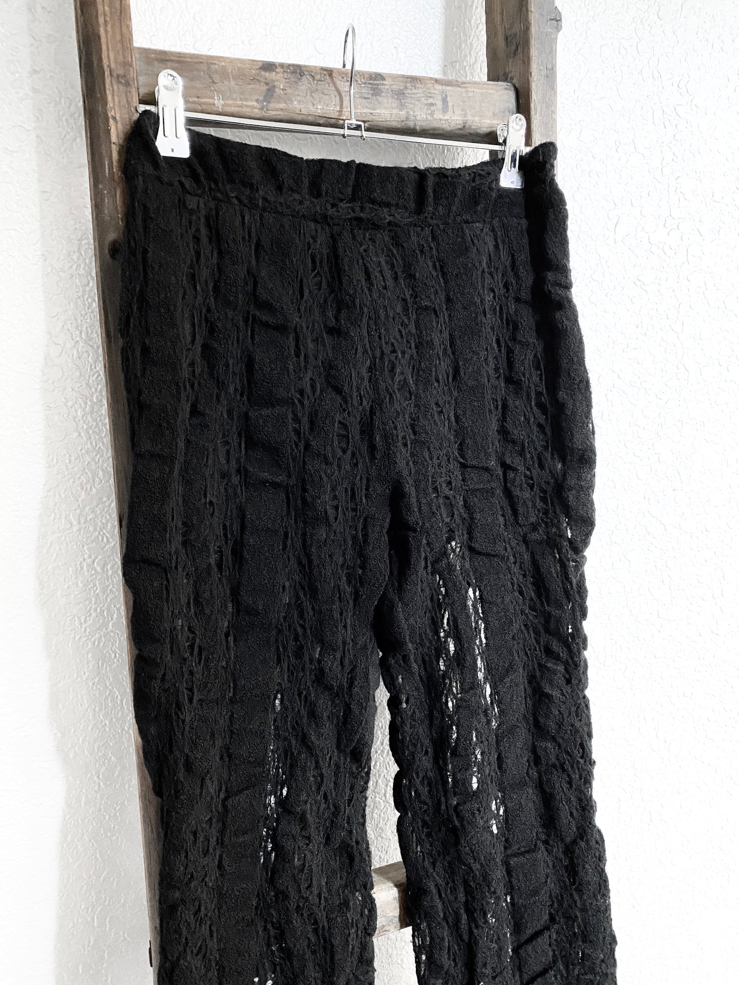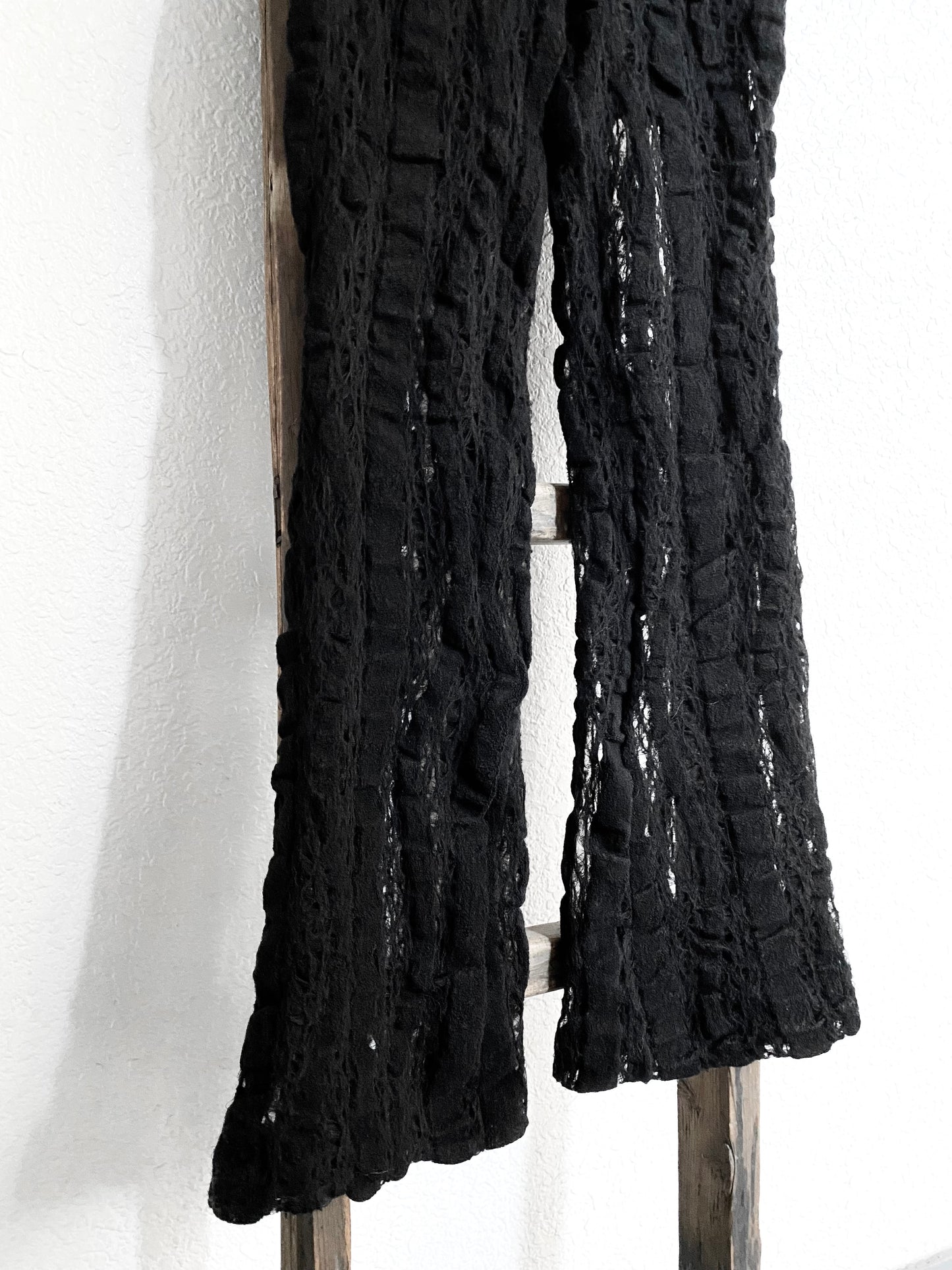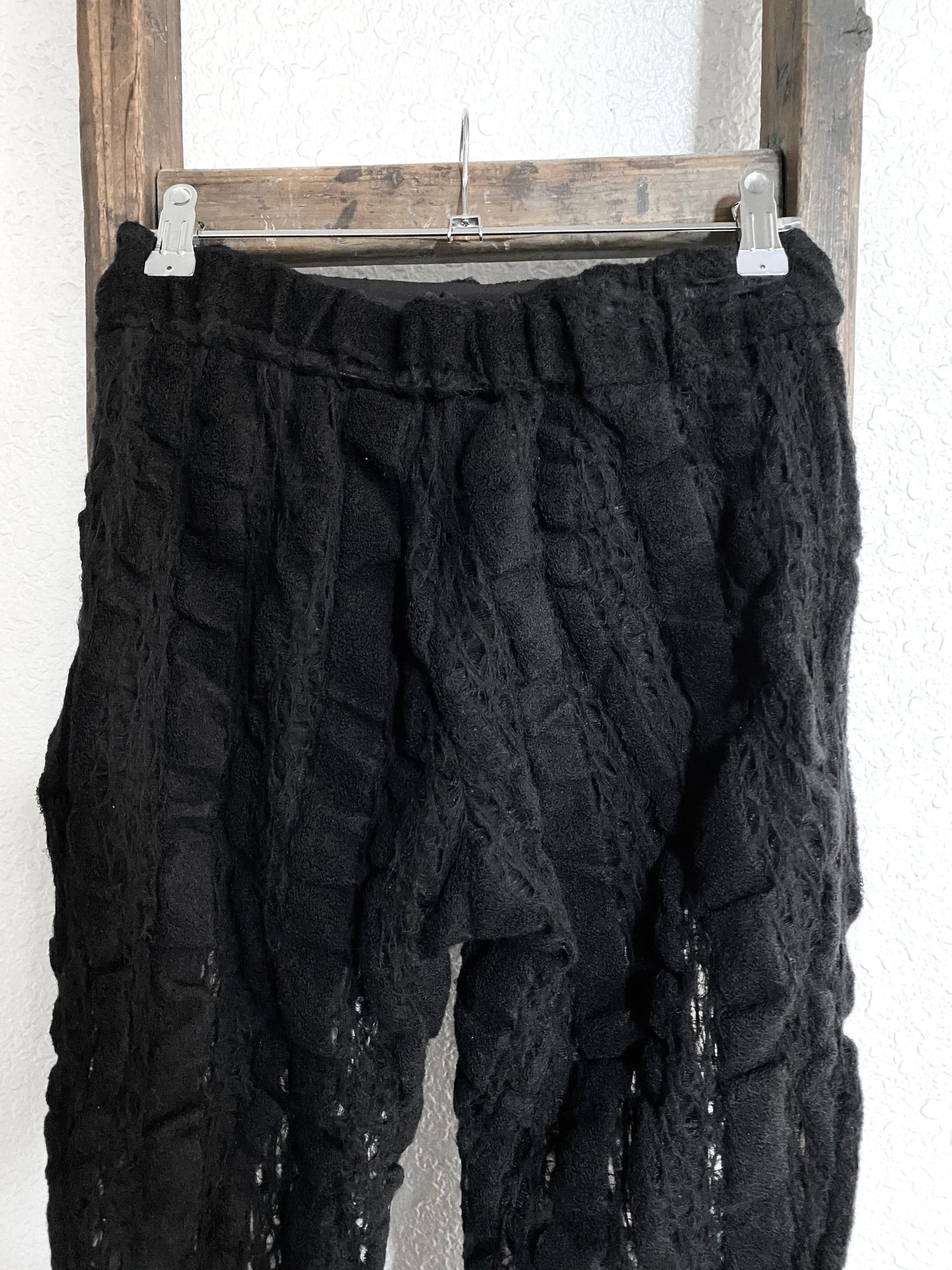 ハイライズパンツ、バックウエストバンド、サイドファスナー、インナーショートペチコート付き。フレアレッグ仕上げ、2サイズ展開。