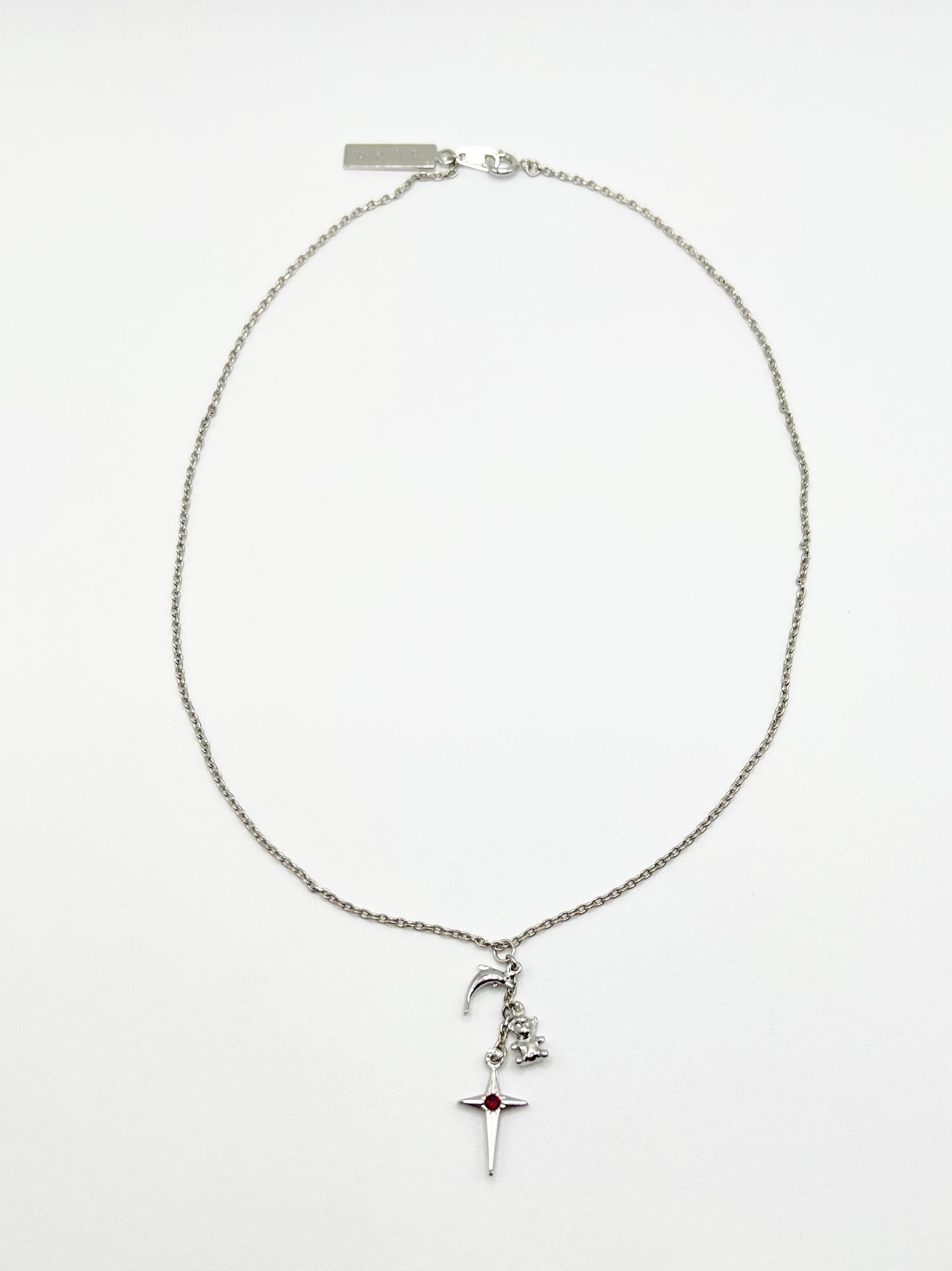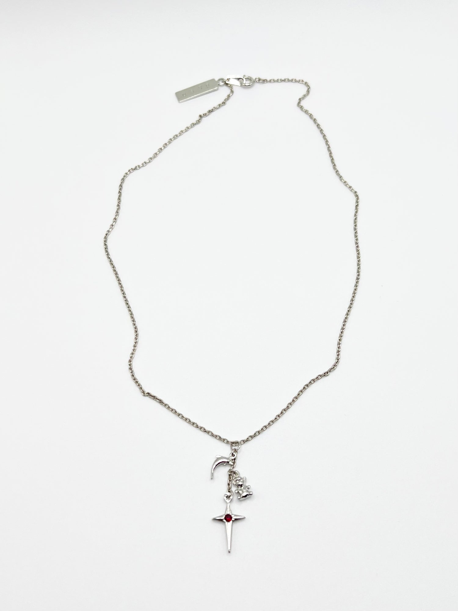 トップのクロスモチーフには、お好きなクリスタルガラスの色を選べます。ベースは全てシルバーメッキ、クリスタルガラスは5種類(クリア、ブラック、レッド、グリーン、ブルー)からお選びください。